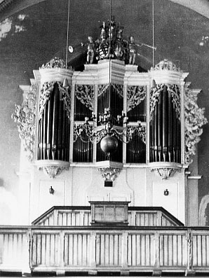 Am 22. 5. 1715 Verhandlung mit Silbermann über den Bau einer neuen Orgel mit Rückpositiv. Am 28. 4. 1716 Kontraktabschluß über eine zweimanualige Orgel mit 18 Stimmen. Im November 1717 ist die Orgel fertig, jedoch, auf Grund der Platzverhältnisse, ohne Rückpositiv. 1887 warnt Wolfgang Hilf vor dem Einbau artfremder Stimmen und Änderung des Stimmtones, findet aber kein Gehör. 1892 überführt Friedrich Ladegast die Orgel in die an gleicher Stelle neu gebaute Kirche. Dabei Umsetzten der Pfeifen auf den Laden und Anlöten von Verlängerungsstücken an die Prospektpfeifen. Einbau von 6 artfremdem Stimmen auf eine pneumatische Registerkanzelle. 1905 entfenrnt Jehmlich, Dresden, die Cymbel 2fach. 1953 entfernt Jehmlich die Aeoline 8' und baut Cymbel 2fach wieder ein. 1954 Erneuerung der Windkästen und Kanäle im Hauptwerk, Überholung der Traktur, Entfernung der pneumatischen Zusätze. Neubau von Mixtur 3fach und Cymbeln 2fach im Hauptwerk, Erneuerung einzelner Pfeifen und Vergrößerung des Pedals um Octavbaß 8' und Choralbaß 4' auf zusätzlichen Laden unter Verwendung des Materials ausgebauter Stimmen von Ladegast. 1974 Gebr. Jehmlich, Ausbau der beiden Pedalstimmen und Wiederherstellung der Originaldisposition. 1994 führte Kristian Wegscheider, Dresden; eine Reperatur mit einzelnen Rekonstruktionsarbeiten aus. Disposition: Hauptwerk