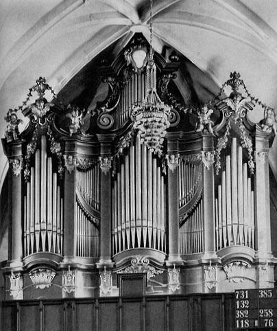1718 Vertrag mit Gottfried Silbermann über den Neubau einer Orgel. Das Gehäuse wurde evtl. nach einem Entwurf von George Bähr gefertigt. Am 15. 11. 1720 war Übernahme durch den Rat der Stadt und am 18. 11. Einweihung. Am 19. und 20. 9 1725 spielt Johann Sebastian Bach auf der Orgel, ebenfalls am 14. 9. 1731. 1747 fertigt Johann George und David Schubert eine Unda maris für das Oberwerk an. 1773 fühhrt Gottfried Hildebrand umfangreiche Reparaturarbeiten durch. 1813 und 1816 wiederum Reparaturarbeiten durch Johann Andreas Uthe, Hoforgelbauer zu Dresden. Wiederherstellung der Orgel, die bei der Benutzung der Kirche als als Unterkunft für Kriegsgefangene stark gelitten hat. 1836 Einbau der aus der Glauchauer Silbermann-Orgel entfernten Vox humana in das Oberwerk. 1874/75 Carl Eduard Jehmlich, Überholung der Orgel, dabei Einbau von Octavbaß 8', Octavbaß 4' und Aeoline 8' anstelle von Unda maris. Versetzung der Orgel an die Westseite. 1936 Erhöhung des Stimmtones und Einbau von Regal 8' anstelle von Vox humana. 1945 Zerstörung der gesamten Kirche und der Orgel am 13. Februuar. Oberwerk: