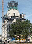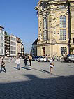 Heute ist der 29. 10. 2005. Morgen ist große Eröffnung in der Frauenkirche. Ich bin gespannt, wie die neue Orgel klingen wird. Der Andrang auf dem Vorplatz ist enorm. Wie man sehen kann, die Gebäude um die Frauenkirche nehmen ebenfalls Gestalt an. |